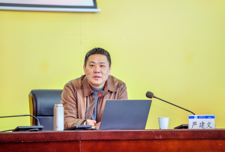 本网讯 3月19日下午,学校在南校区徽风楼二楼报告厅召开校党委理论学习中心组学习会暨深入学习贯彻全国两会精神辅导报告会,邀请第十四届全国政协委员、合肥合锻智能制造股份有限公司董事长严建文作题为《以新质生产力推动高质量发展》的专题报告,解读2024年全国两会精神。校党委理论学习中心组成员、副处级以上干部、思政课教师、辅导员和民主党派、离退休干部和师生代表共300多人参加。校党委副书记、校长黄显怀主持会议。