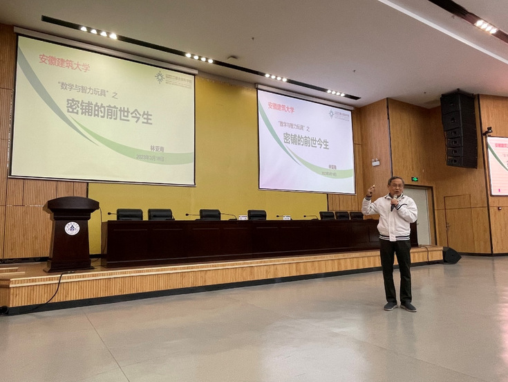本网讯 近日,由学校党委宣传部主办,数理学院承办的第114期易海大讲堂在徽风楼二楼报告厅举行。厦门大学林亚南教授做客“易海大讲堂”,为我校师生带来一场题为“密铺的前世今生”数学科普讲座。报告会由校党委常委、副校长闵杰主持,数理学院领导、骨干教师和全校学生代表共300余人参加。