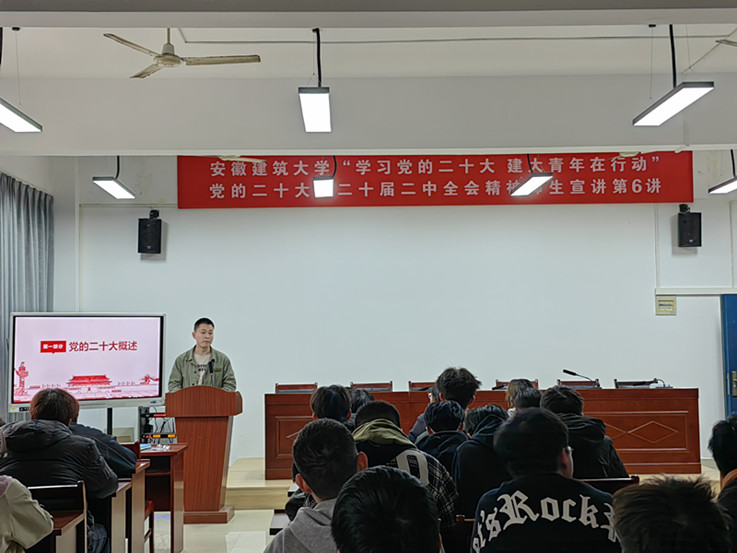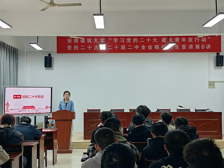 本网讯  326日,“学习党的二十大,建大青年在行动”党的二十大、二十届二中全会精神师生宣讲团走进机械与电气工程学院机械与电气工程学院、环境与能源工程学院辅导员学生代表、思政委员等100余人参加宣讲会。