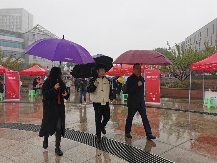 本网讯 3月27日下午,ku游官方第一届国际教育展在南校区日月广场如期举办。校党委常委、副校长闵杰教授来到现场,实地了解国际教育展情况,向本次来校参展的各国外高校代表和合作机构表示欢迎,并与学生们亲切交谈。近400名在校学生不减热情、冒雨参展。