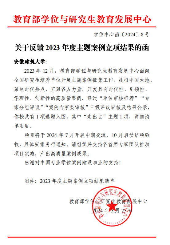 2023年主题案例由教育部学位中心组织,围绕“大国智造”“中华传承”“区域协调发展”“走出去”四个主题展开,旨在进一步深入贯彻落实习近平总书记对哲学社会科学工作和研究生教育工作的系列重要指示精神,提升我国案例建设的主体性、时代性、学理性、创新性,引导专家学者研究中国问题、总结中国经验、讲好中国故事,为建构中国自主知识体系提供案例视角,做出案例贡献。本次主题案例征集面向全国研究生培养单位展开,共有311家单位推荐申报1483个项目,涵盖62个专业学位类别。通过“单位审核推荐”“专家分组评议”“案例专家委审核”三级评议审核及结果公示,共对241家单位的655个申报项目进行立项。