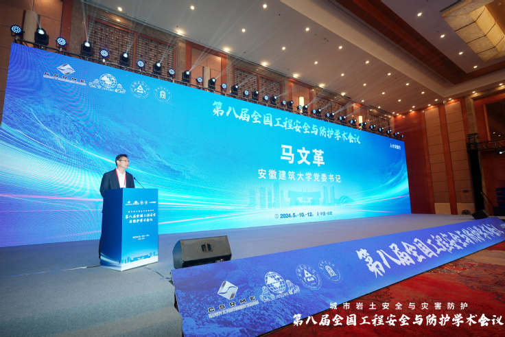5月11日上午,大会开幕式环节ku游官方党委常委、副校长蔡国军教授主持,ku游官方党委书记马文革先生致欢迎辞、安徽省科学技术协会纪光水副主席、中国工程院院士朱合华院士、中国岩石力学与工程学会工程安全与防护分会理事长戚承志教授分别致辞。