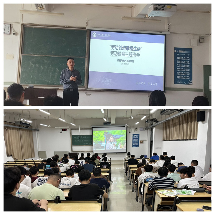 深化思想认识,观摩专题节目。5月9日,学院在主教楼1402组织开展“劳动创造幸福生活”主题班会,通过班会让学生深刻理解劳动精神,大力弘扬劳模精神,树牢正确劳动观念,以劳动者应有的姿态参加到劳动教育体验活动中。会后,组织学生观影了《中国梦·劳动美-2024五一国际劳动节“心连心”特别节目》。
