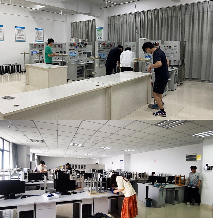 筑基明德,将劳动教育融入专业学习。学院所有学生按照专业分配至所在专业实验室,负责实验室桌面和地面的清洁,检查电源线和连接线是否完好,电脑主机是否积尘,仪器仪表是否正确放置等,利用所学电路知识和计算机技术等对实验室仪器仪表进行保养和维护及小故障的维修,在劳动中学以致用,培养严谨细致的专业品质和素养。