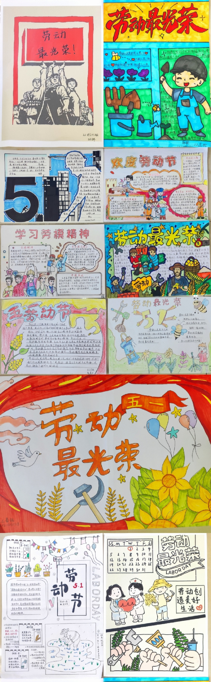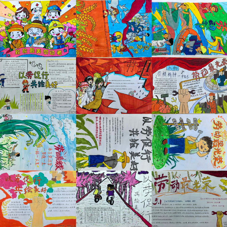 勤劳绘彩人生,创意点亮未来。丰富校园文化生活,开展“以劳促行 共绘美好”主题海报绘画活动。引导大学生用画笔和色彩弘扬劳模精神、劳动精神、工匠精神,激发大学生热爱劳动、以劳为美的思想和行动自觉。活动启动以来,学生踊跃参与,共收到30幅海报作品,参赛作品主题鲜明、内容丰富、形式多样,围绕劳动最光荣、劳动模范事迹、劳动小贴士等方面进行精美的创作。同学们纷纷表示通过手绘加深了对劳动的理解,锻炼了创造力、审美力和实践力。