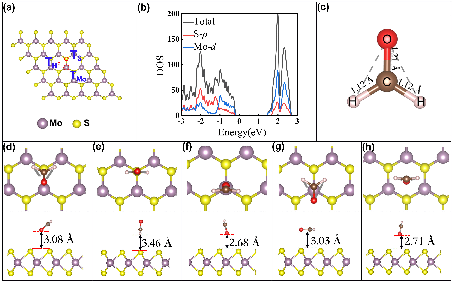 甲醛是一种室内有害气体,也是肺癌患者的呼吸标志物,其吸附和检测具有重要意义。本征MoS2为范德华层状结构,具有化学惰性,难以用于甲醛的吸附和检测。高娅雯等基于第一性原理计算较为系统地研究了缺陷MoS2对甲醛的吸附和气敏性质。研究在MoS2单层中引入硫空位和过渡金属原子等多种缺陷,计算分析了这些缺陷的原子结构、电子结构和形成能等。以此为基础,研究进一步考虑了不同缺陷情况下甲醛气体的吸附,对每种情况,计算了甲醛分子的吸附能,以及吸附前后的体系态密度、电荷转移、电荷密度差等,并据此对各种情形下材料对甲醛气体的吸附和气敏性质进行了讨论分析。