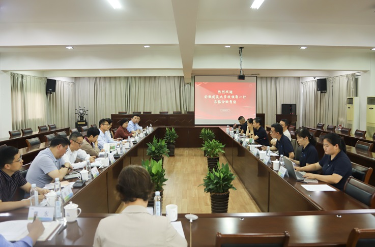 合锻智能制造股份有限公司董事长严建文对学校领导班子率队考察调研表示热烈欢迎。他从企业发展历程、经营业绩、发展区域、业务板块、人才培养等方面对公司整体情况作详细介绍,并对集团与学校在高端人才输送、人才联合培养、毕业生就业、科学研究等方面合作情况做了系统回顾。他对学校近年来的人才培养质量、办学实力和社会影响力高度赞赏,希望校企双方在科学研究、资源共享、人才招引等方面发挥双方特色优势,在高频双台阵地震模拟试验平台建设等国家重点科研攻关方向持续发力,建立常态长效机制,促进共同发展,打造校企合作安徽品牌。