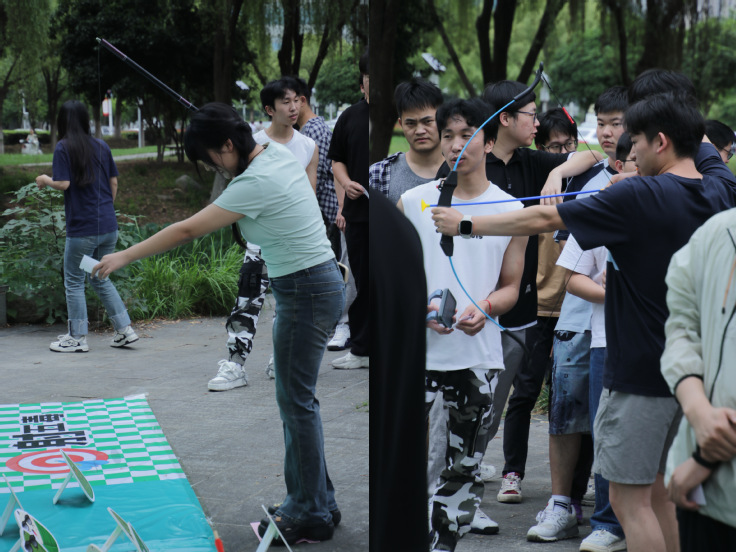 同学们轮流上场进行射箭。他们调整姿势,用力拉弓,瞄准靶子,希望能够命中目标。每当有同学成功射中靶子时,现场响起一阵阵欢呼声和掌声。射五毒游戏的过程充满了欢笑和挑战,不仅丰富了他们的课余生活,也增强了团队合作意识和凝聚力,为校园生活增添了一份美好的记忆。