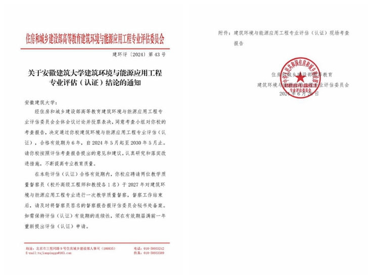 本网讯 6月26日,根据住房和城乡建设部高等教育建筑环境与能源应用工程专业评估委员发布的《关于ku游官方建筑环境与能源应用工程专业评估(认证)结论的通知》(建环评〔2024〕第43 号),ku游官方建筑环境与能源应用工程专业顺利通过专业评估(认证),合格有效期为6年,自2024年5月起至2030年5月止。