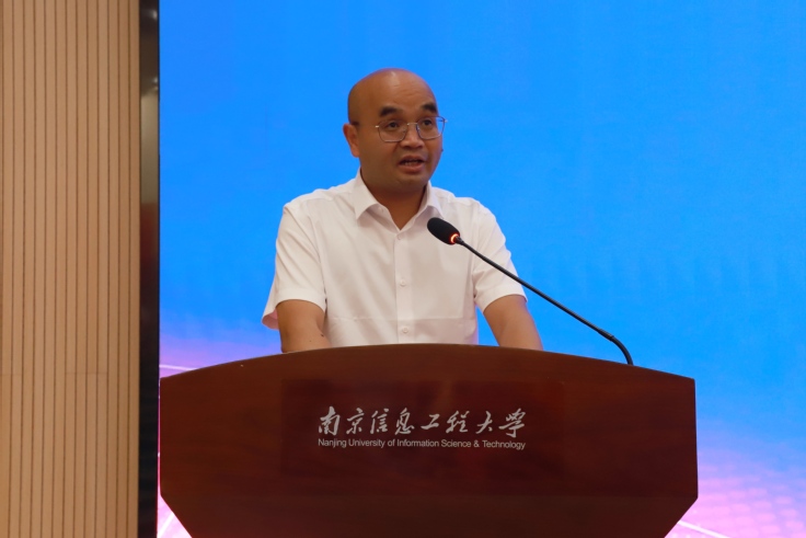 吴攀热烈欢迎入驻金牛湖产教融合园区的97名研究生。他指出,两校依托金牛湖产教融合园区平台,优势互补、携手向前,共同助力长三角区域经济社会高质量发展。随后重点介绍了南京信息工程大学的基本情况和研究生培养状况。寄语首批联培研究生,南信大金牛湖产教融合园区将成为大家人生的新起点,可以充分发挥潜能,尽情施展才华,谱写人生最美的篇章,创造更加灿烂美好的明天。
