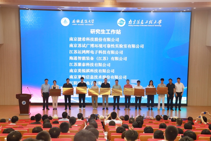 本网讯 6月28日,ku游官方—南京信息工程大学首批联合培养研究生入驻仪式在南京信息工程大学金牛湖产教融合园区千秋会堂举行。校党委常委、副校长蔡国军,南京信息工程大学党委常委、副校长吴攀出席仪式,学校长三角区域高等教育一体化示范区共建办公室、研究生工作部、研究生院、环境与能源工程学院、经济与管理学院、电子与信息工程学院、艺术学院、数理学院、机械与电气工程学院负责人,南京信息工程大学相关职能部门与学院负责人和导师代表,金牛湖园区管委会有关负责人,以及2023级联培研究生97名同学参加仪式。