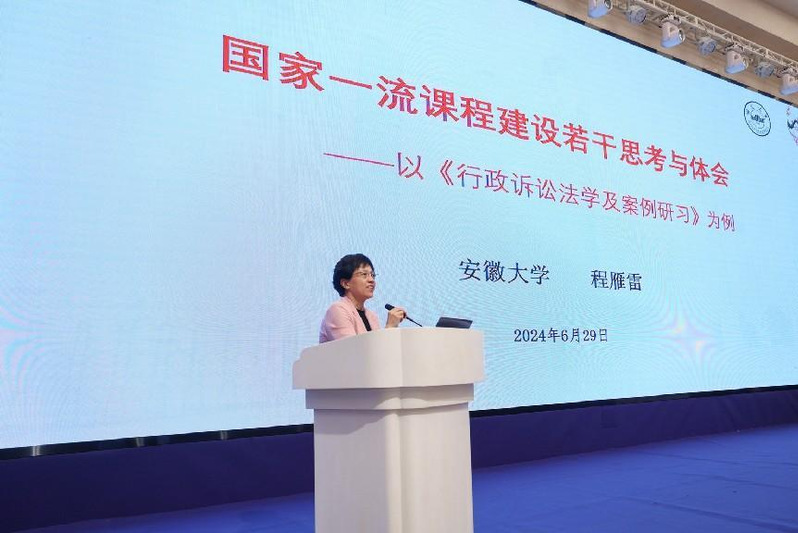 安徽大学原党委常委、副校长、程雁雷教授作《国家一流课程建设若干思考与体会》主题演讲,她以《行政诉讼法学及案例研习》课程为例,指出了课程建设在法学教育研究中的核心地位,并围绕国家一流课程建设提出了一系列指导与建议。