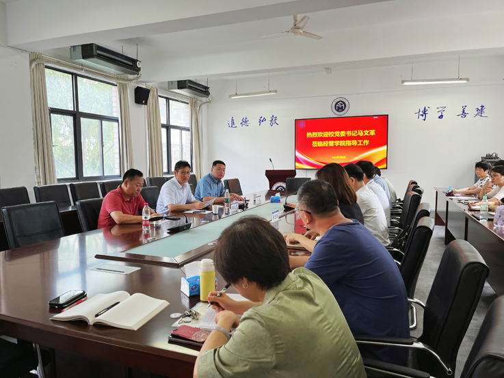 马文革认真听取了工作汇报,并对学院近年来取得的成绩表示充分肯定。他指出,学院领导班子要进一步解放思想,将党建与中心工作及重点任务有机融合,以高质量党建引领学院事业高质量发展;坚持立德树人,牢固树立以学生为中心的思想,用心用情用力做好学生服务与管理工作;强化学科建设,发挥特色专业优势,加大高层次人才引进力度,为学院发展提供强有力的人才支撑;加强学院文化建设,凝聚师生合力,形成全院上下心往一处想、劲往一处使的良好氛围。(文/图:金三人 孙文;一审:孙文 二审:彭志胜 三审:陈国中)