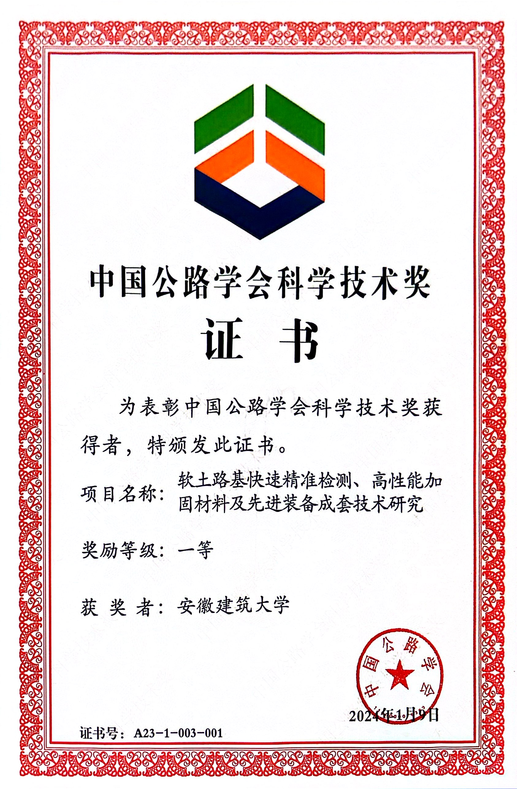 本网讯 近日,2023年度中国公路学会科学技术奖颁奖大会在山东青岛召开。大会表彰了195项获奖项目,其中特等奖5项,一等奖47项,二等奖92项,三等奖51项。ku游官方牵头的项目“软土路基快速精准检测、高性能加固材料及先进装备成套技术研究”荣获一等奖。