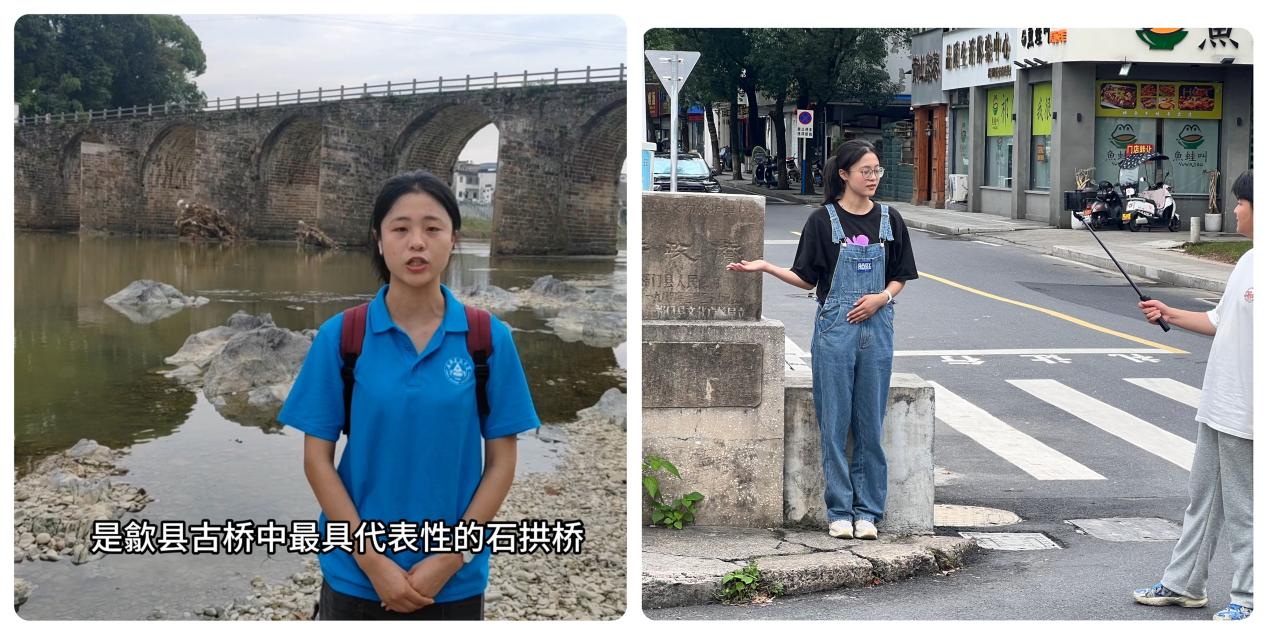 视频宣传,唤醒保护意识。为更有效唤起当地居民乃至社会各界对古桥保护的关注与认识,团队成员们精心策划并制作了一系列创意短视频,巧妙地将传统建筑美学融入现代传播手段,通过多元化的新媒体平台广泛传播,让古桥历史韵味与现代生活产生跨越时空的对话。对视频内容进行深度挖掘,分为历史追溯篇、技艺展示篇以及现状危机篇三大板块,分别介绍每座古桥背后承载的丰富的历史故事与文化记忆、古桥独特的建筑技艺与精湛工艺以及直面古桥存在的自然侵蚀、岁月老化等现实问题。视频通过慢镜头、微距拍摄等方式,尽可能清晰地展现古人智慧的结晶,激发观众对古桥技艺的敬畏之心。采用纪实手法,通过展示受损细节,配以沉重的背景音乐和旁白,如同低沉的警钟,在每个人心中回响,唤醒人们保护古桥的意识。