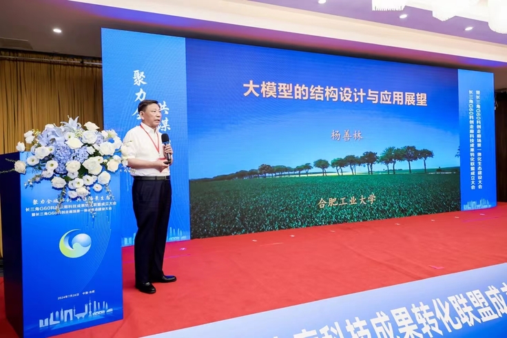 杨善林院士在会上作了“大模型的结构设计与应用展望”主旨发言,生动介绍了AIGC在科学发现、技术发明、工程创新中发展与应用。第一届联盟秘书长单位、理事会代表单位及成员单位代表分别进行了发言,分享了成果转化与场景创新的先进经验。