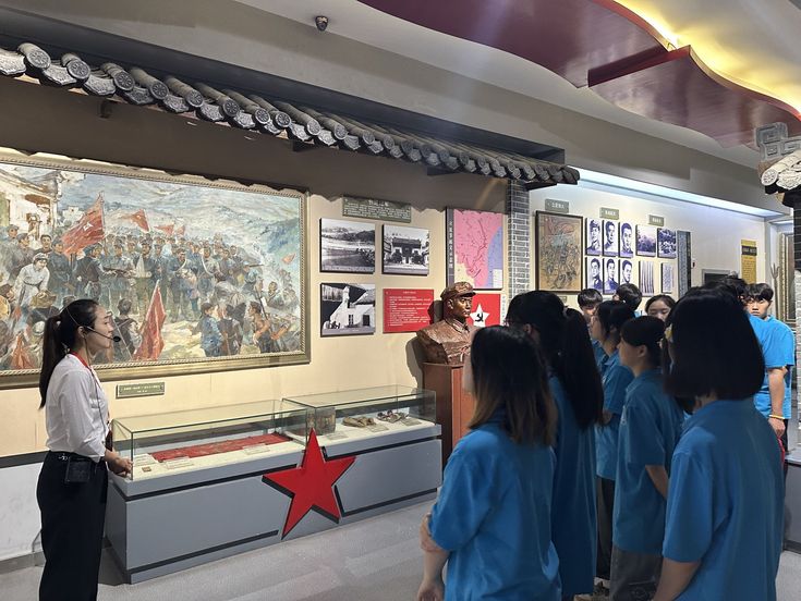 数理学院学生第一党支部赴高峰乡西港村新四军第四支队司令部旧址开展“红色讲解员”志愿服务活动。“现在映入大家眼帘的是新四军第四支队司令部的作战指挥室和战地沙盘、战士们使用过的武器、战利品、生活用品及发展生产的农具....”伴随着声情并茂的讲解,两位身穿建大蓝、胸口佩戴党员徽章的小欧先锋宣讲团成员化身讲解员活跃在新四军第四支队司令部旧址内,为前来参观学习的20多位中小学生讲述新四军第四支队的发展历史,共同追忆峥嵘岁月。