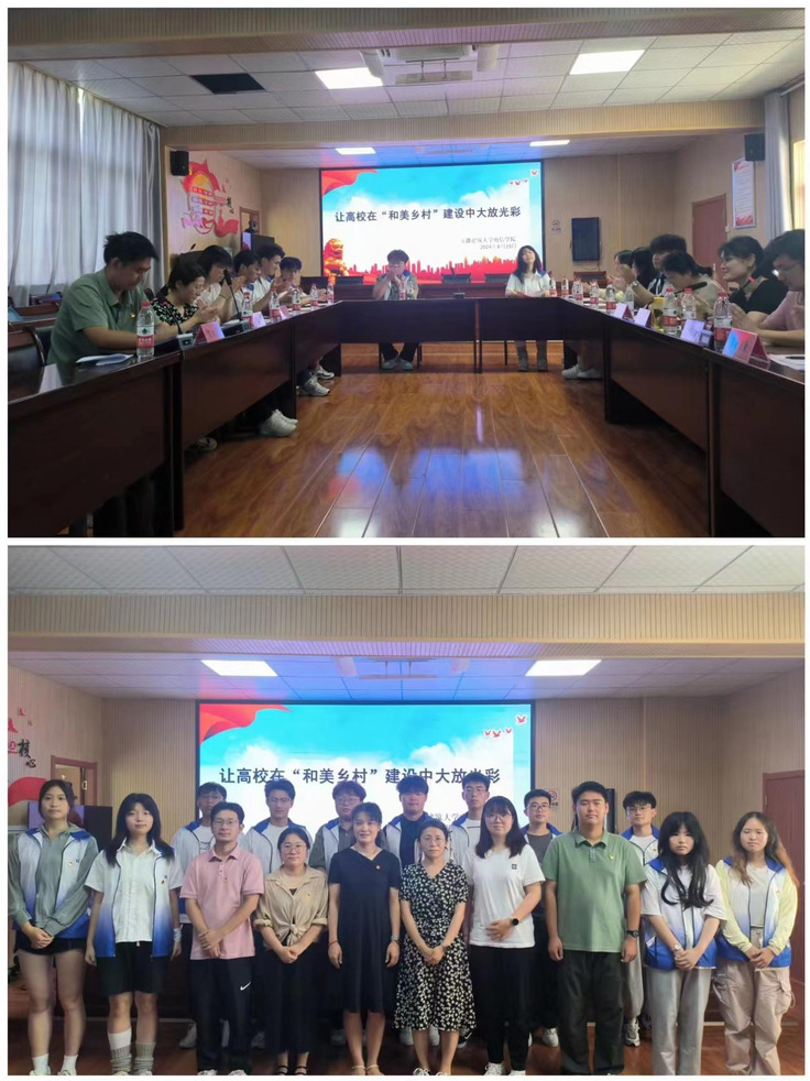 在交流座谈会上,洪林镇党委委员崔尔婷介绍了洪林镇近年来经济社会发展情况,特别介绍了洪林镇在和美乡村建设中的一些好做法,好经验。并对ku游官方电信学院的学子助力当地和美乡村建设表示衷心的感谢。学院党委副书记丁媛媛对洪林镇党委政府的热情接待表示感谢,并详细的介绍了学校及学院学科建设情况,也表达了继续与洪林镇党委政府深化合作,助力和美乡村建设的愿意,并表示,一方面希望三下乡实践团队能够发扬吃苦耐劳的优良作风,不负众望、不畏艰辛,尽心竭力做好调研工作,圆满完成实践任务;另一方面,也希望同学们利用专业特长积极服务国家乡村振兴战略,从学校小课堂走向社会大课堂,投身火热实践生活,在社会课堂中受教育、长才干、作贡献。实践团队学生代表以《让高校在和美乡村建设中大放光彩》为主题进行了发言,充分展现了青年学子希望在和美乡村建设中发挥作用的初心与担当。