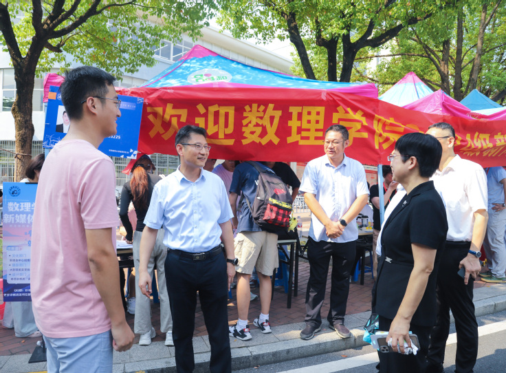 校领导马文革、黄显怀、王玉兰、蔡国军、李早来到各学院迎新现场,看望2024级新生和家长并慰问迎新工作人员。
