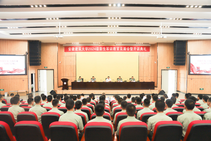 本网讯 9月9日上午,2024级新生军训教官见面会暨开训典礼在紫云路校区徽风楼2楼报告厅举行。校党委常委、副校长蔡国军出席会议并致辞,学校人武部负责同志,中国人民解放军某院校官兵,各学院分管学生工作的副书记参加会议。