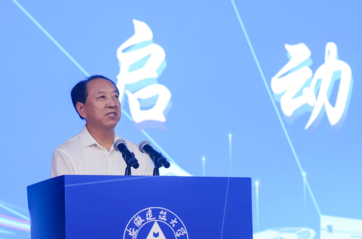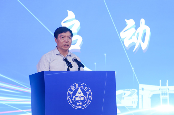 校友代表、中铁四局一公司蚌埠市延安路大桥及接线工程项目经理部、工程部部长廖志良,公共管理学院党委副书记江侠在启动仪式上发言。
