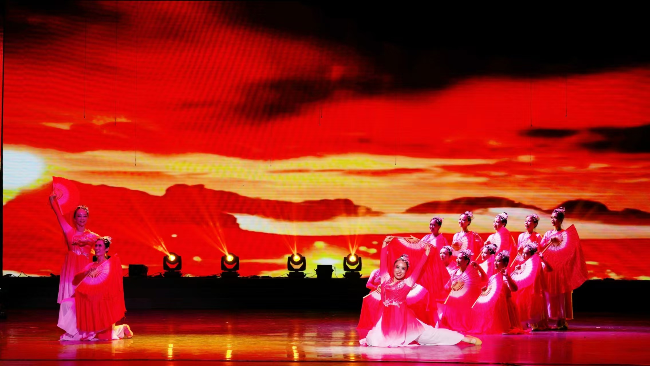 大气磅礴的音乐、悠扬高亢的歌声、婀娜多姿的舞步,完美展现了我校教职工积极向上的精神面貌,获得观众的阵阵掌声和一致好评。