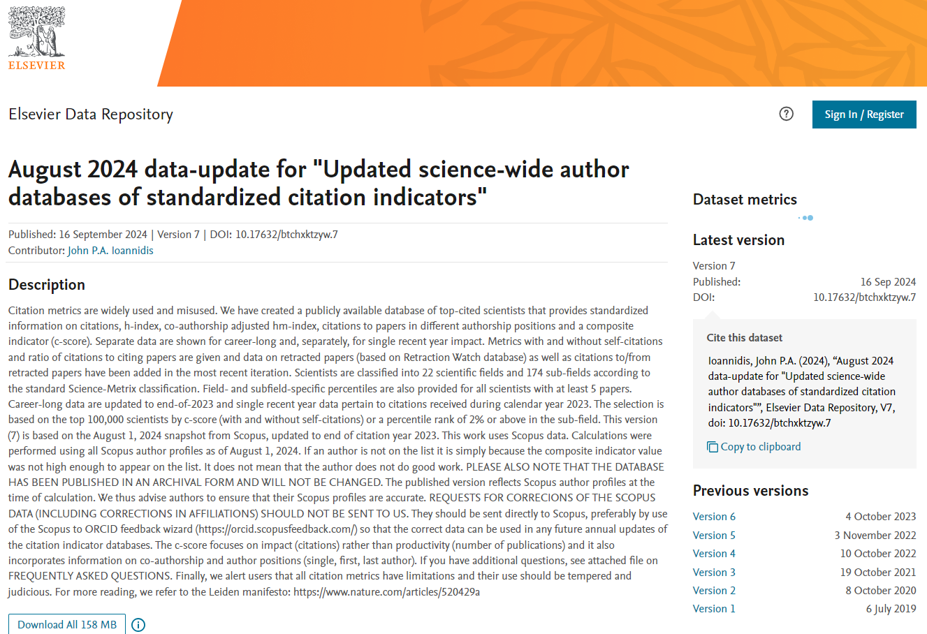 该榜单基于Scopus引用数据的系统分析,以被引数、h指数、hm指数等六种关键因素的指标进行打分,涵盖22个科学领域和174个子领域,遴选出全球前2%的顶尖科学家,该榜单客观、真实地反映科学家的影响力。(作者:王平/沈丹;一审:王平;二审:赵强;三审:雷经发)