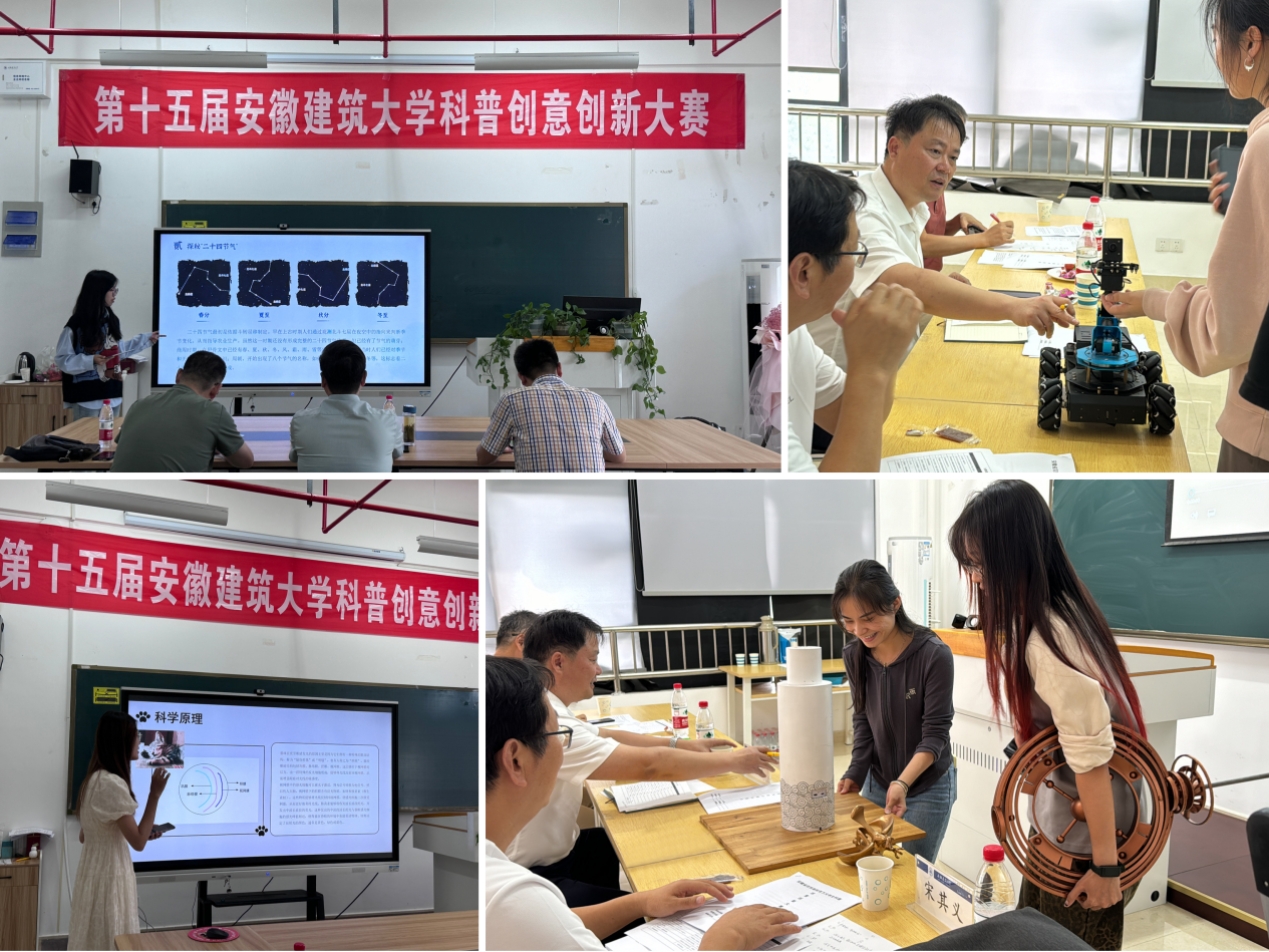 在校赛现场,评委们从作品的科学性、创新性、实用性、艺术性及传播效果等多个维度进行了综合评判。经过严格打分与激烈讨论,最终评选出了18件作品推荐省赛。