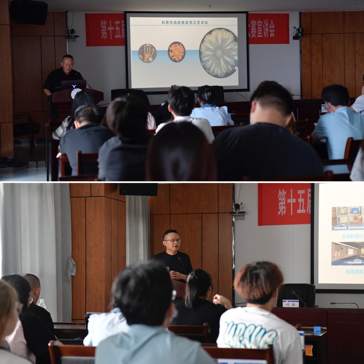 在为期数月的筹备与实施过程中,学校围绕“科普创新,助力未来”的主题,策划并开展了一系列科普月活动。科普月期间特邀了中国科学技术大学张燕翔教授、安徽省科普产品工程研究中心叶浩老师担任宣讲嘉宾,为同学们从科普作品的分类、选题方向进行了详细解读。从作品创意设计的思路和方法,针对不同类别的参赛作品进行了创作指导,向同学们详细介绍了往届优秀获奖作品的亮点分析。