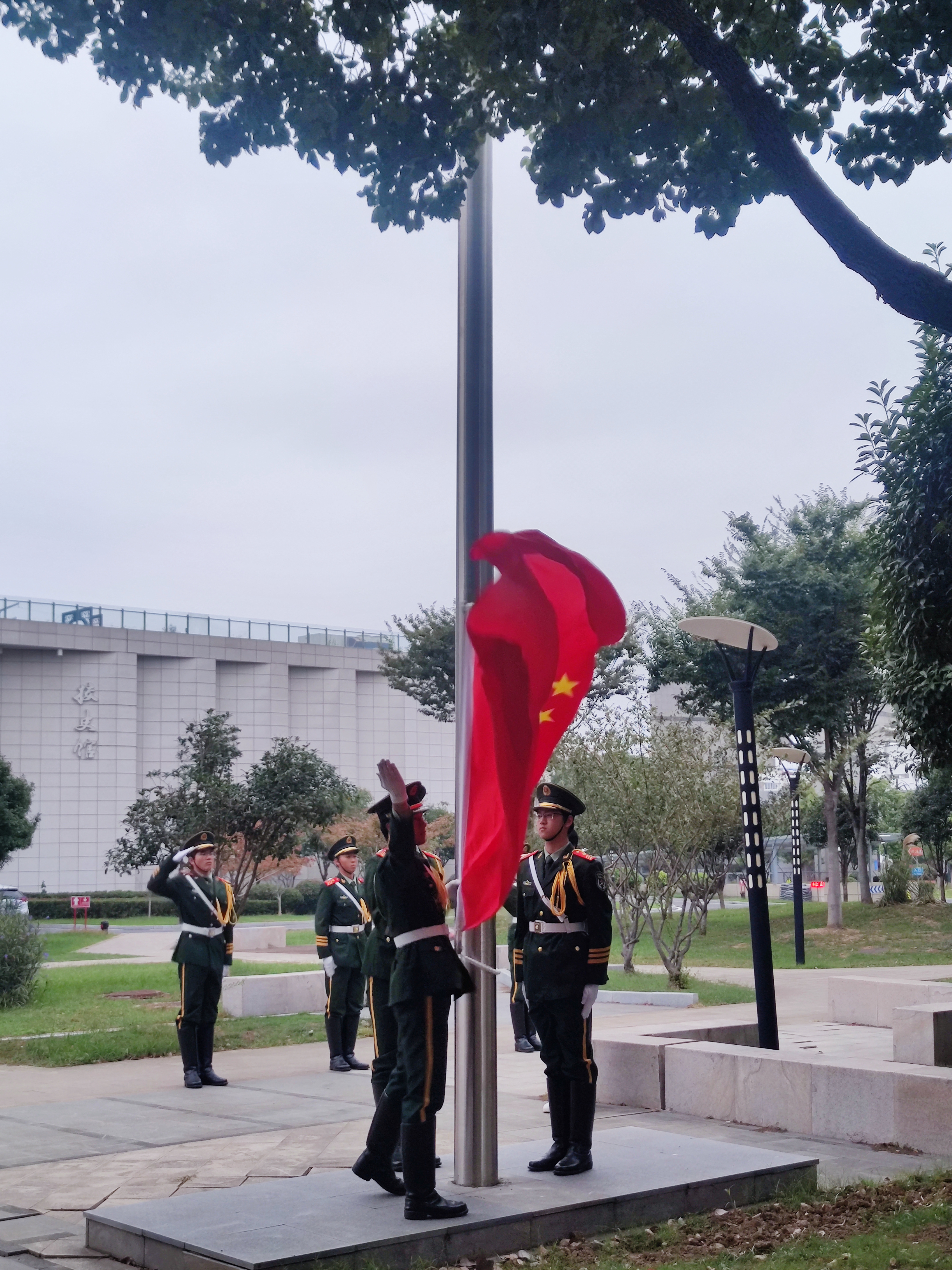 上午6点40分,迎着熹微的晨光,国旗护卫队迈着整齐矫健的步伐,昂首阔步向前。师生们早早齐聚旗台前,怀着崇敬与期待的心情,共同见证这一庄严而神圣的时刻。仪式伊始,全体师生肃立,目光坚定地注视着前方,鲜艳的五星红旗伴随着雄壮的国歌冉冉升起,迎风飘扬。每个人心中充满了无比的自豪与深深的敬意,在这个特别的日子里,我们衷心祝愿伟大的祖国繁荣昌盛,国泰民安。