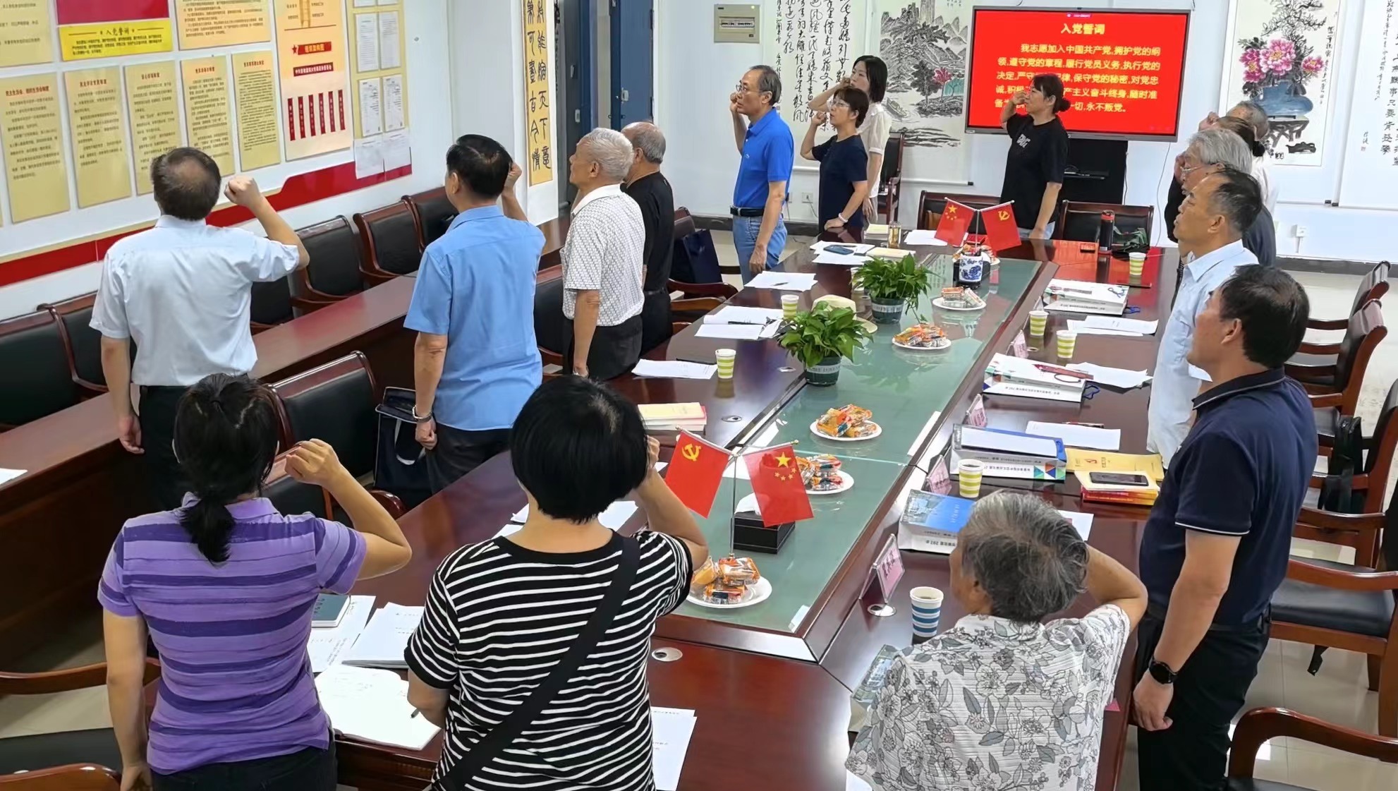会上,离退休党委负责人汪涛向过政治生日的党员赠送了政治生日贺卡及《党的二十届三中全会精神解读》等资料。汪涛在总结发言中指出,入党日这个重要的政治生日,昭示着为党奋斗的初心和使命。希望各位老党员发挥政治优势、经验优势、威望优势,不忘初心、牢记使命,继续充分发挥党员的先锋模范作用。
