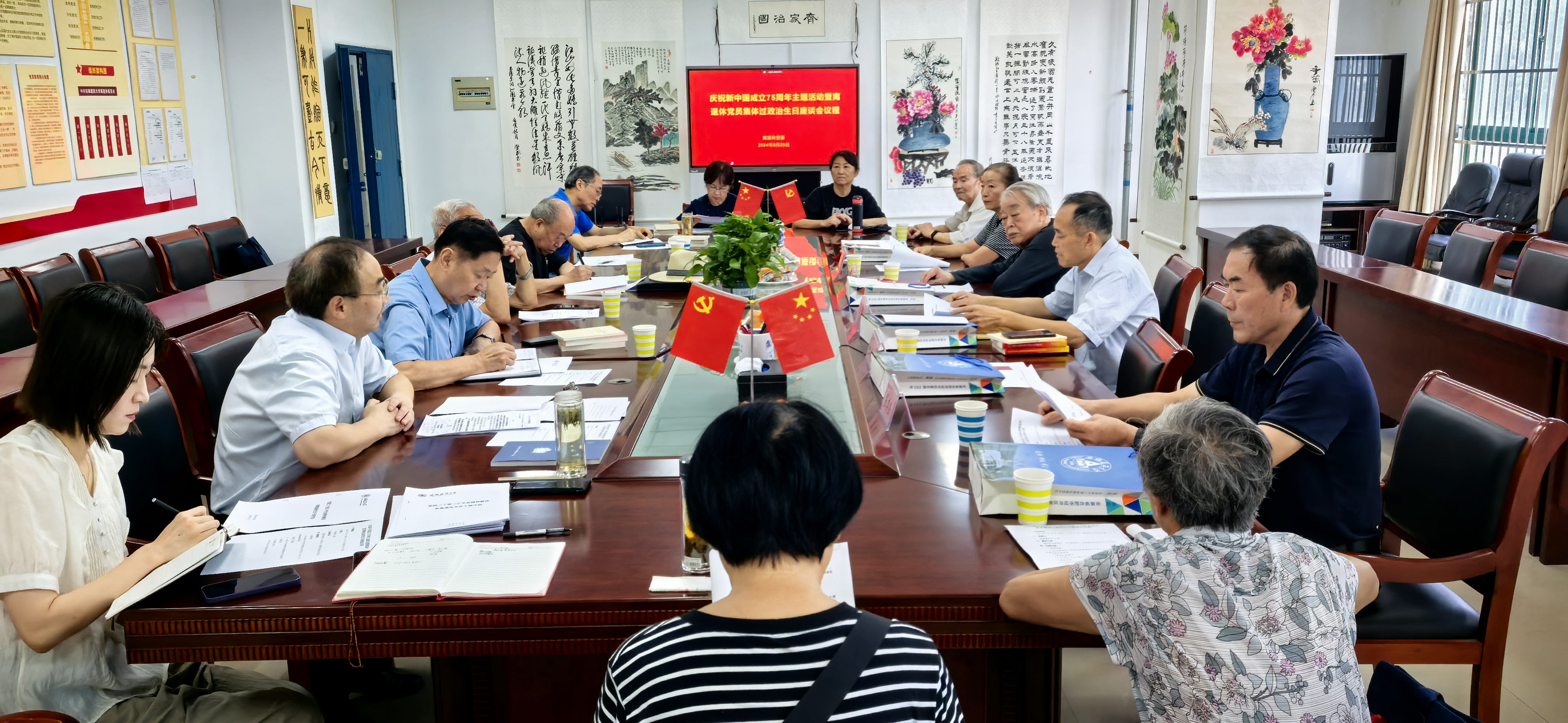 本网讯 为庆祝中华人民共和国成立75周年,引导离退休党员铭记入党誓词,时刻牢记自己的“第一身份”。近日,离退休党委在党员活动室开展了集体生日会活动。离退休党委委员、支部书记、支部委员及过政治生日的党员参加会议。