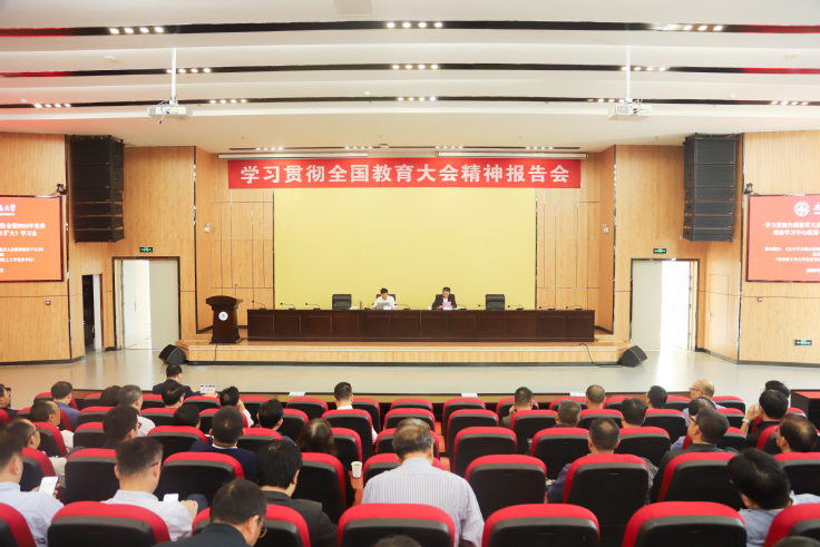 报告会上,袁自煌回顾了新中国成立以来召开的历次全国教育大会的主要内容,重点介绍今年9月9日至10日习近平总书记在全国教育大会上的重要讲话精神,习近平总书记深刻指出教育是强国建设、民族复兴之基,并发出了“朝着建成教育强国战略目标扎实迈进”的号召,指出要统筹实施科教兴国战略、人才强国战略、创新驱动发展战略,一体推进教育发展、科技创新和人才培养。袁自煌强调,要全面准确深入学习宣传贯彻大会精神和领悟习近平总书记重要讲话精神实质和核心要义,必须牢牢把握教育的政治属性、战略属性、人民属性,坚定不移走中国特色社会主义教育发展道路。