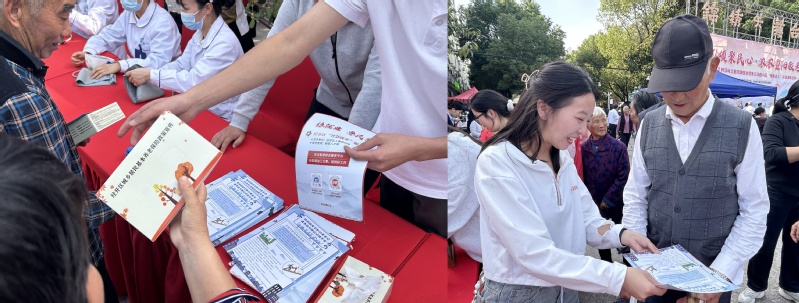 活动现场,公共管理学专业的研究生党员充分发挥自身学科优势,通过讲解实际案例、分发宣传手册等形式,耐心细致地向社区居民介绍了医疗保障、养老保险等与群众切身利益息息相关的政策内容,并就大家关心的养老退休金、劳动权益保障、申领社保卡等问题逐一解答,社区居民站在政策宣传台前认真听讲、阅读宣传手册、并就生活中遇到的困惑提问。为方便交流,进一步为居民答疑解惑,活动一角专门设置了居民问答互动环节,鼓励居民提问和分享心得,不仅提高了社区居民主动学习国家政策的积极性,也增强宣讲活动的有效性和影响力。
