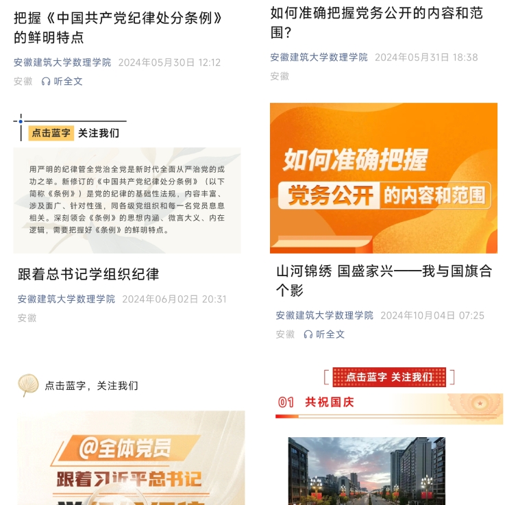 学院打造全方位、深层次、高成效的育人体制机制,扎实开展学生思想政治引领工作,不断探索育人新路径,持续提升思想育人成效。一是成立“小欧”先锋宣讲团,围绕不同主题结合学生日常开展系列宣讲活动,2024年小欧先锋宣讲团开展了雷锋月、党纪学习教育、安全教育、诚信教育系列主题宣讲活动。二是开展红色教育实践活动,通过实践育人将政治理论学习与实践相结合,发挥红色资源感染人、教育人、引导人的作用,2024年学院组织开展“携手共筑乡村梦 青春聚力正当时”暑期“三下乡”社会实践活动、“缅怀革命先烈 传承红色精神” ——数理学院学生第二党支部清明祭英烈主题党日活动等,三是要运用新媒体新技术,推动思想政治工作传统优势同信息技术高度融合。2024年学院利用微信公众号、易班工作平台发布形式多样、内容丰富的推文,紧扣不同主题开展爱国主义教育,通过新媒体宣传达到引导青年、教育青年、服务青年的效果。