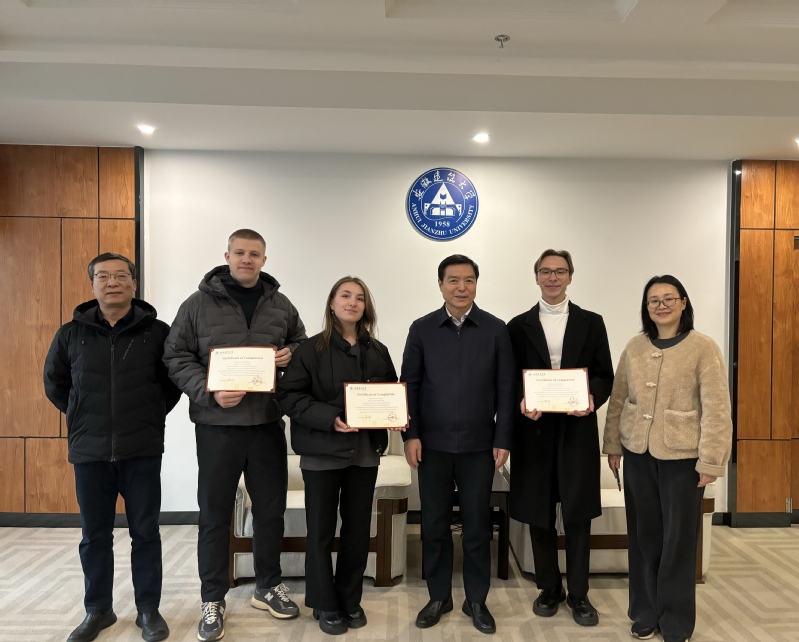 本网讯 1月8日,校党委副书记、校长黄显怀在徽风楼21楼接待室会见了即将完成交流学习、回国返校的俄罗斯下诺夫哥罗德建筑大学交换生,向他们颁发结业证书、赠送纪念品。