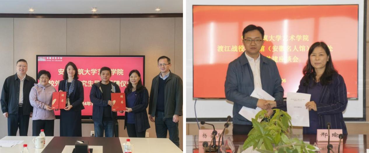 着眼“新”,汇聚合力共建共赢。新建省级科研平台“安徽文艺评论创作基地暨文艺志愿服务点”。与东华大学、安徽省交通控股集团有限公司、杭州色环科技有限公司等签订产学研合作协议6项,合同经费162万元。与安徽楚文化博物馆、安徽省名人馆签订合作共建协议。与安徽美术馆就共建研究生联合培养实践基地达成协议。举办安徽名人大讲堂讲座、全国联合毕业设计AIGC训练营及主题展览活动,促进校校、校企、校地交流与协同创新。