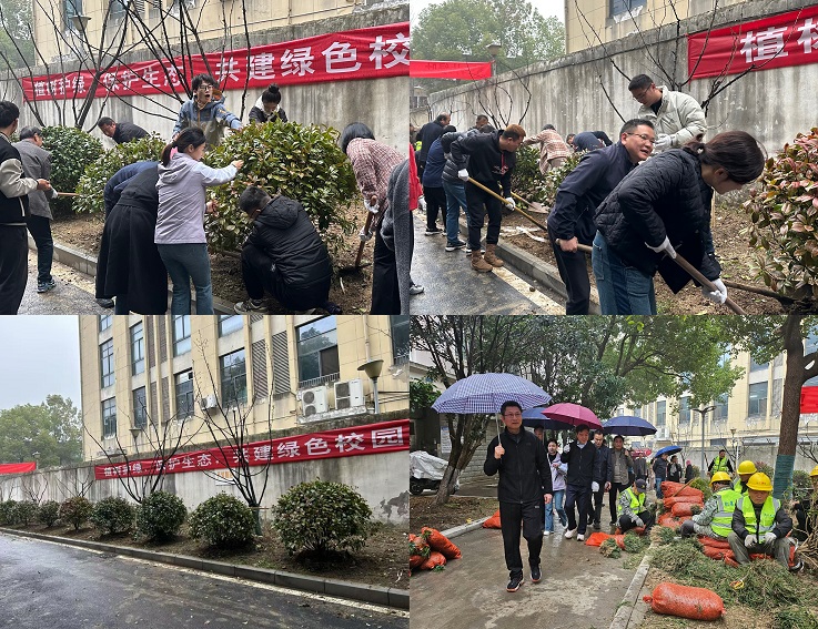 在校领导的带动下,师生们干劲十足,现场气氛热烈。在大家的共同努力下,一棵棵新栽的树苗在春雨中昂然挺立,为校园增添了一抹生机勃勃的绿意。此次植树活动共栽种了红叶石楠、亮晶女贞、海桐等树苗,这些树苗不仅美化了校园环境,也寄托了师生们对未来的美好期许。