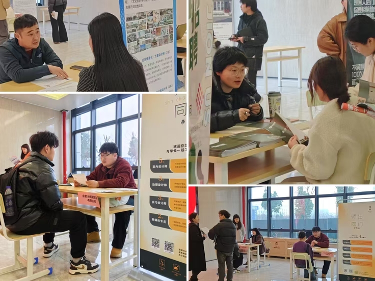 座谈会上,李早代表学校对企业进校招聘表示热烈欢迎,介绍了学校近年来发展情况,与参会企业就人才培养、校企合作等方面展开交流。潘青介绍了艺术学院发展历程、特色与优势,与校友企业负责人共忆学生时代成长。任磊结合当前就业状况分析了艺术学子的就业特点,表示将持续提升人才培养质量,满足用人单位需求。与会企业代表分别介绍了企业的发展情况、人才需求以及对我校人才培养的建议,表示学校毕业生专业基础扎实、实践能力较强,深受企业欢迎,希望后期能够与学校建立长期稳定的合作关系,共同探索人才培养新模式,推动校企双方互利共赢。招聘会现场气氛热烈,毕业生就业意向较强,企业招聘负责人与毕业生面对面沟通交流,与50余名毕业生初步达成就业意向。