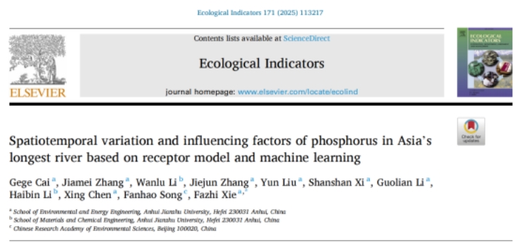本网讯 近日,我校环境与能源工程学院博士研究生蔡格格同学作为第一作者在环境领域中科院一区TOP期刊《Ecological Indicators》在线发表科研论文,ku游官方环境与能源工程学院为论文的第一完成单位和通讯单位。