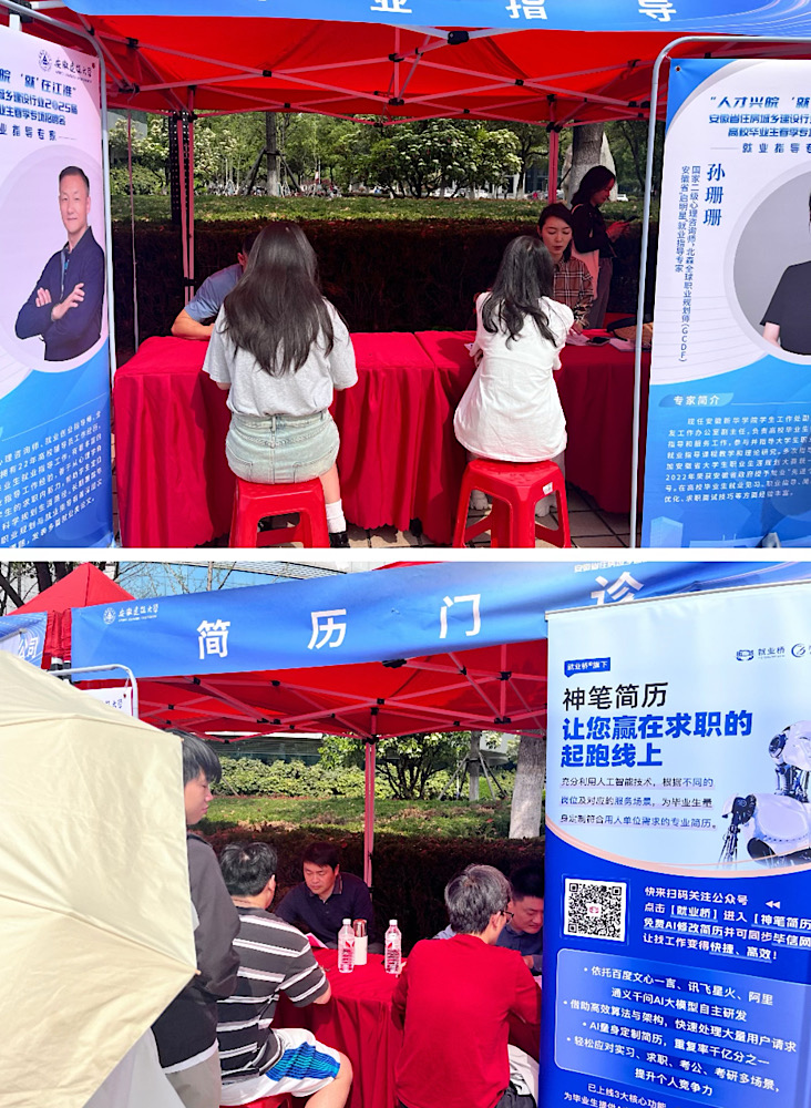 为更好的服务毕业生和用人单位,就业工作处在招聘会现场设立多个服务专区。在就业指导和简历门诊专区,4名专业老师现场为毕业生提供就业咨询、简历优化、面试技巧等指导服务,帮助他们提升求职能力,增加就业竞争力;在党员服务台前,支部党员们耐心为企业做引导;校保卫处、后勤管理处在现场维持秩序,提供医疗保障,确保招聘会的顺利进行。