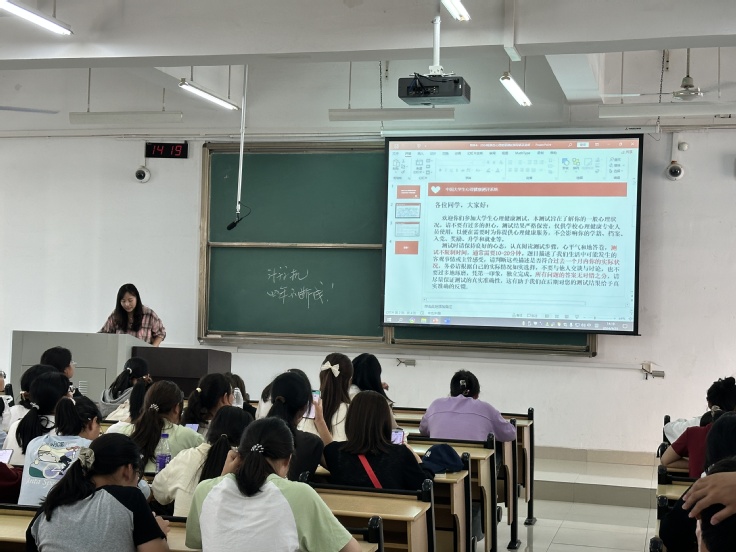 此次心理健康测评使用的是“中国大学生心理健康测评系 统”,基于云平台进行心理测评 。学院心理辅导站认真学习测试相关要求,积极申请场地,以专业为单位,通过手机微信小程序参与此次测评。在测试过程中,由辅导员统一宣读指导语,并介绍本次心理健康测评的操作流程及其步骤 ,指导学生们认真作答 ,确保顺利且高效的完成了此次心理测评工作。