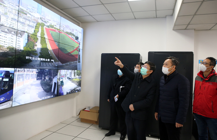 会后,方潜生走访查看了学校总值班室,慰问值班值守人员并仔细查阅工作台账;在学校视频监控室认真查看大屏幕上校园重点部位的实时画面,现场调度、了解校园监控情况和学校大门出入口管控情况。(文/图:李万银 审稿:吴运传)