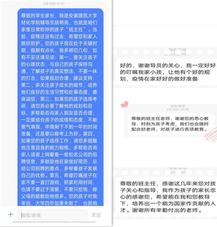 本网讯 在此决胜全面抗击疫情时期,为强化学生在家期间科学防疫、不断学习、提前规划,展望未来。材化学院从学生网络学习、家庭生活、心理防线、未来规划等方面落实行动,引导学生在抗击疫情的过程中锻炼自己、提升自己、充实自己。