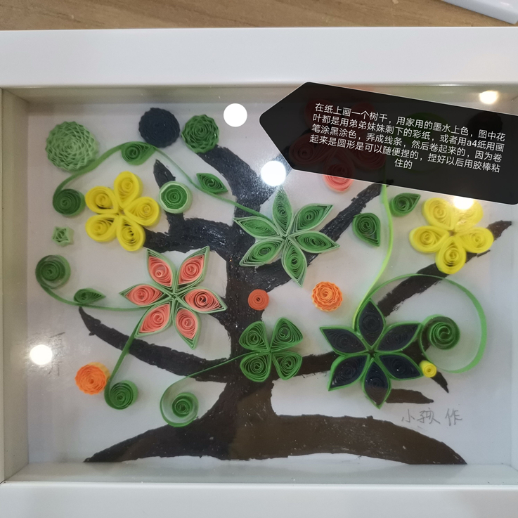 同学们发挥各自的想象力,通过剪、贴、折、画、捏等多种方式,精心打造出自己的杰作。快递盒被剪剪画画变成了书签;洗衣液空盒制作成了花盆;废纸和罐头瓶做成的笔筒;经过反复折叠的陈旧扑克牌,也摇身一变成为收纳盒;废弃的无纺布色眼艳丽,用来制成装饰花送给家人再适合不过;就连路边捡来的树枝,在同学们的构思下也变成了相框,记录着生活的美好点滴。