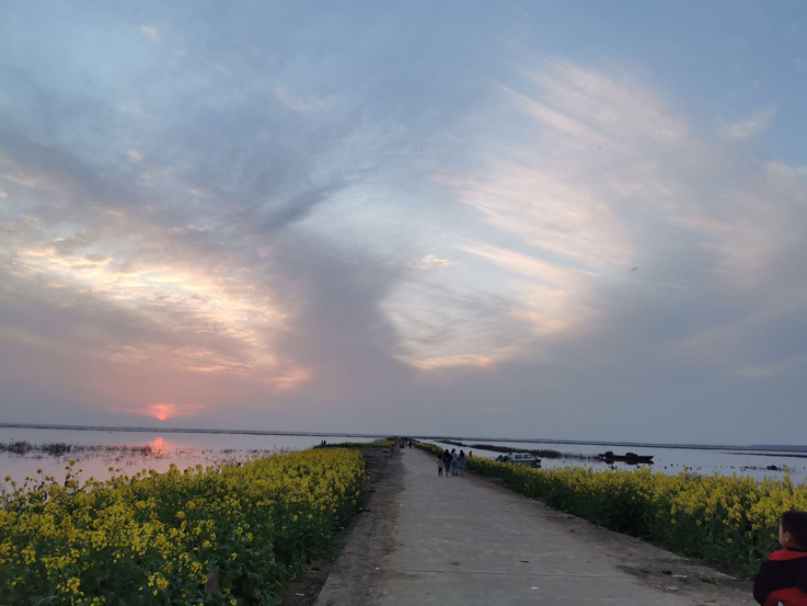 水油晚天,与落日同赴蓼城(霍邱)的西湖畔,赏艳艳春日油菜花。