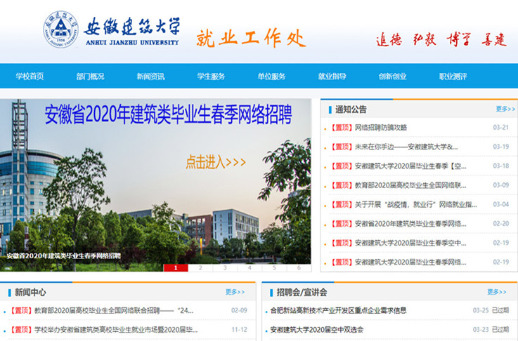 本网讯 疫情发生以来,学校严格贯彻落实省委省政府决策部署和省委教育工委教育厅关于新冠肺炎疫情防控工作有关要求,积极应对疫情带来的冲击和影响,扎实推进疫情防控期间学校毕业生就业工作。3月26日至27日,由省教育厅、省大中专毕业生就业指导中心与学校共同主办的安徽省2020年建筑类毕业生春季网络招聘会正式“上线”。