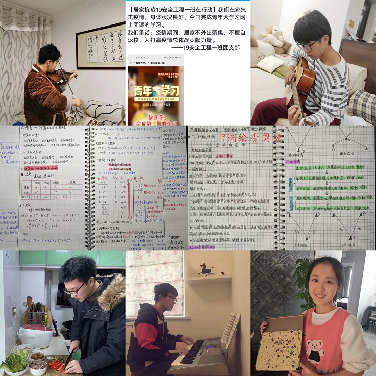 本网讯 2020年新冠肺炎疫情肆虐,全国上下一同经历着凛凛寒冬,我们以生命参与的方式真切地体会到命运与共的血脉之情。凛凛寒冬,有一群人奋战前线,用一份光热暖化寒冰,用满腔热血播种春苗,用生命之光点亮生命;有一群人坚守后方,用粮食口罩消毒水筑牢疫情防线,用美食运动大学习增强必胜信心,用琴棋书画“云”祝福表白抗疫英雄。众志成城,我们熬过凛凛寒冬,迎来了和煦春风。在这场人民总体战中,土木学院19级安全专业和测绘专业的同学们,也在以自己的方式守护着祖国,展现“00”后青年的抗疫精神。