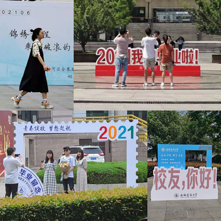 学校有关部门发布了2021届毕业生文明离校倡议书,在校内悬挂了饱含祝福之情的标语与横幅,并在南北校区摆放了多处纪念小景,体现了学校的人文关怀。