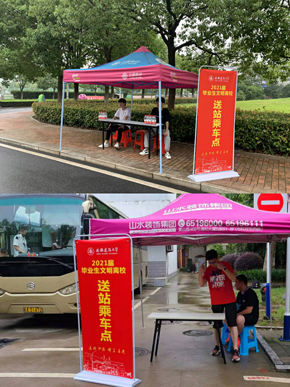 学生处设立了送站乘车点,发车16个班次,为数百名毕业生提供矿泉水和送站服务,毕业生们带着对母校的依恋,踏上了梦想的新征程。